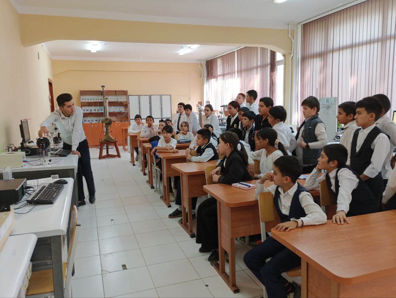 Maktabimiz standart texnik maktab jihozlaridan tashqari, nazariy bilimlarni amalda mustahkamlash uchun maxsus ishlab chiqilgan uskunalar bilan boyitilgan.